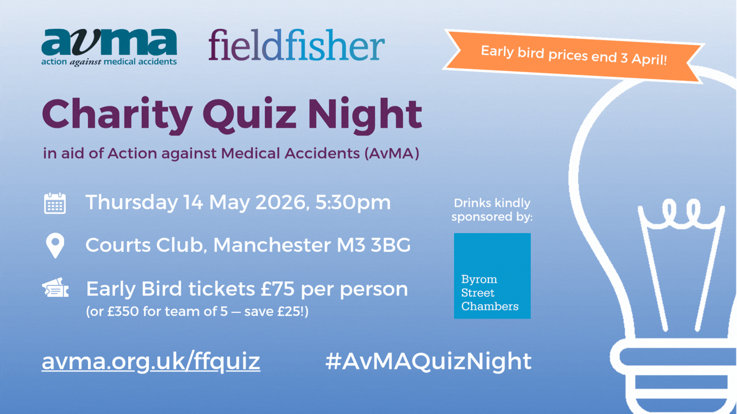 All funds raised, from the sale of tickets to the quiz as well as the raffle on the night, go directly to fund AvMA's helpline, inquest work, outreach projects, and the wider work shaping national patient safety reform.